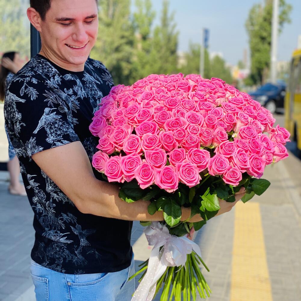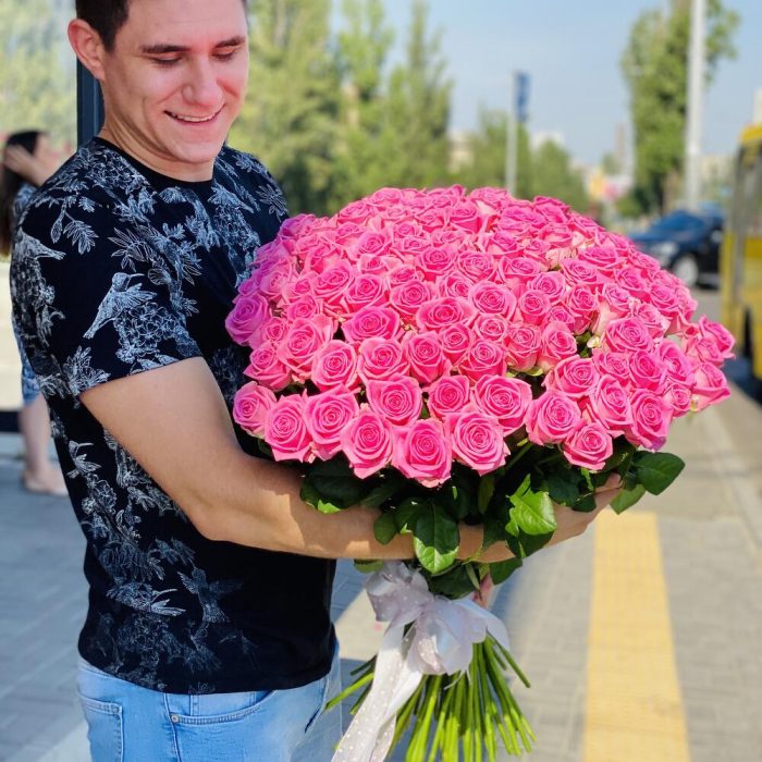 Цей букет рожевих троянд – це витончений та вражаючий подарунок, який виразить ваші найтепліші почуття та стане символом ніжності та романтики. 101 рожева троянда відображає безмежну любов та палкі почуття.