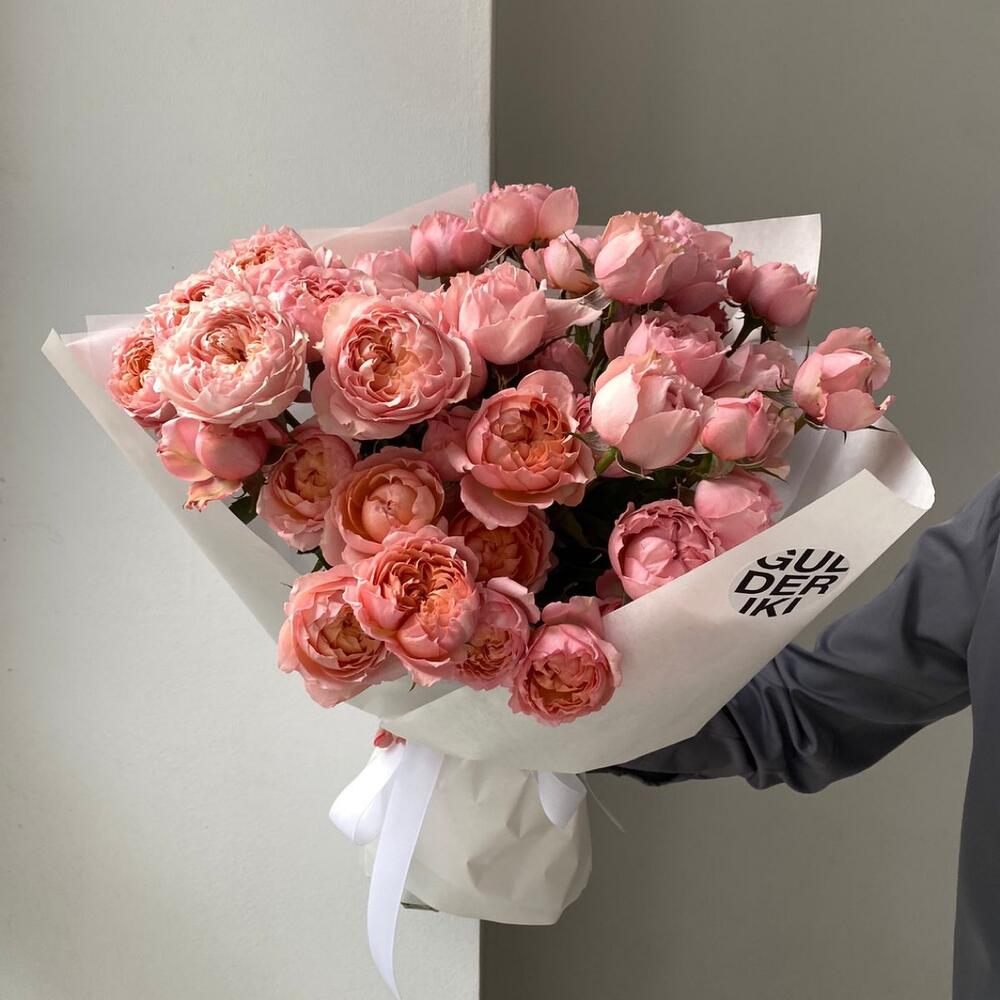 15 пионовидных кустовых роз монобукет