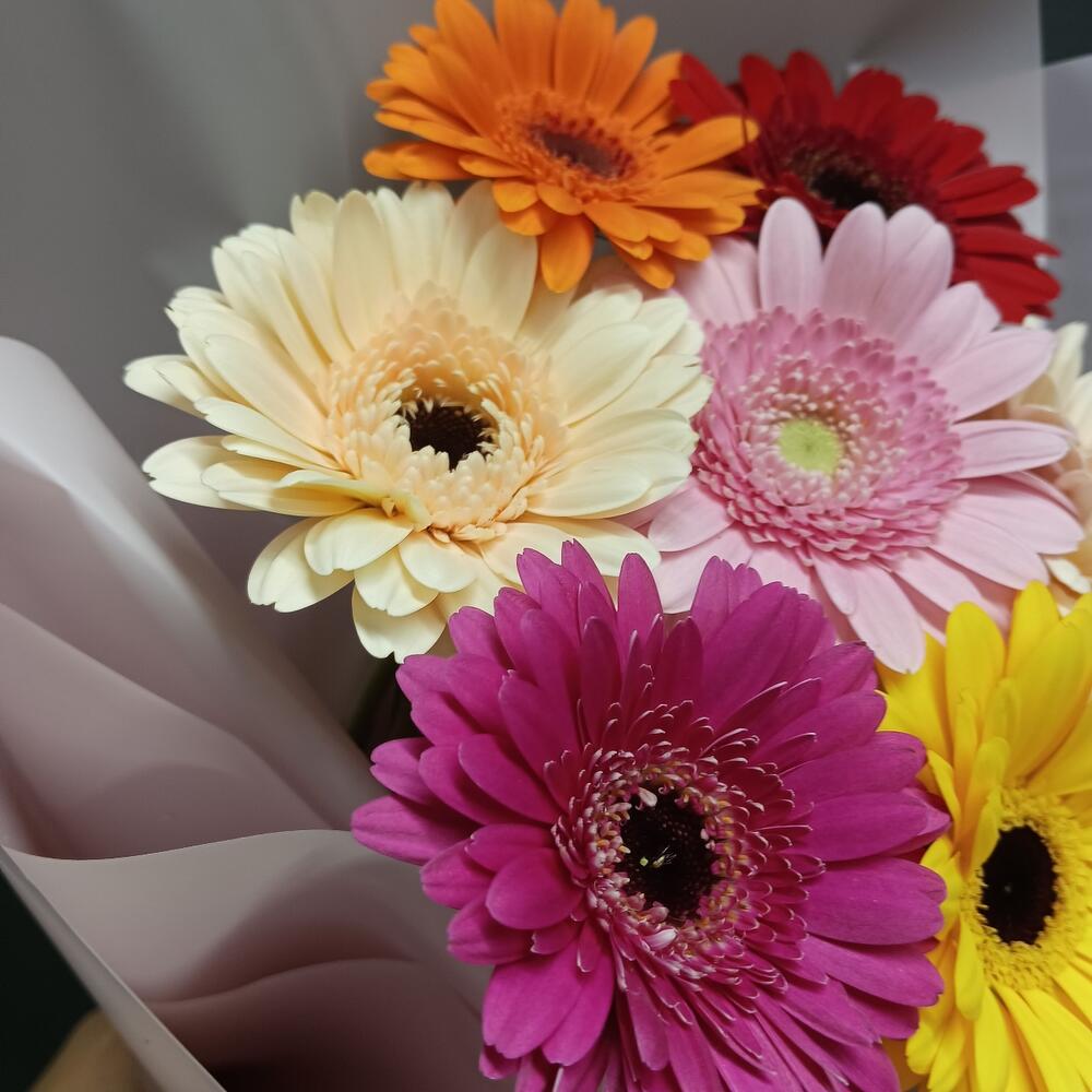 Гербера мини – 7 шт.Упаковка дизайнерская – 1 шт.