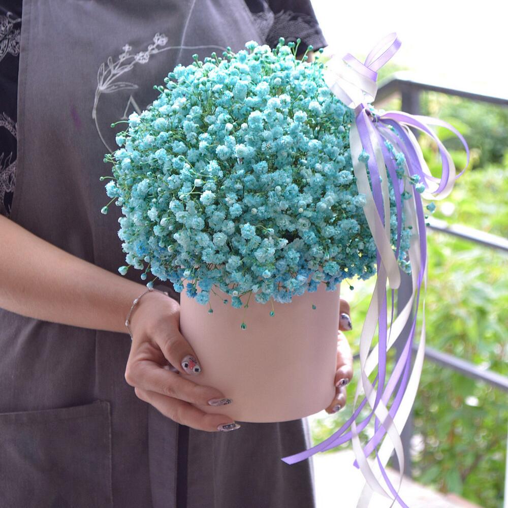 Гипсофила – 7 шт.Шляпная коробка – 1 шт.Декор – 1 шт.