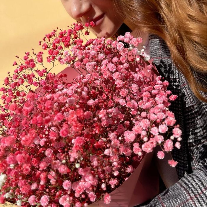 Гипсофила – 5 шт.Лента атласная – 1 шт.бумага матовая – 1 шт.