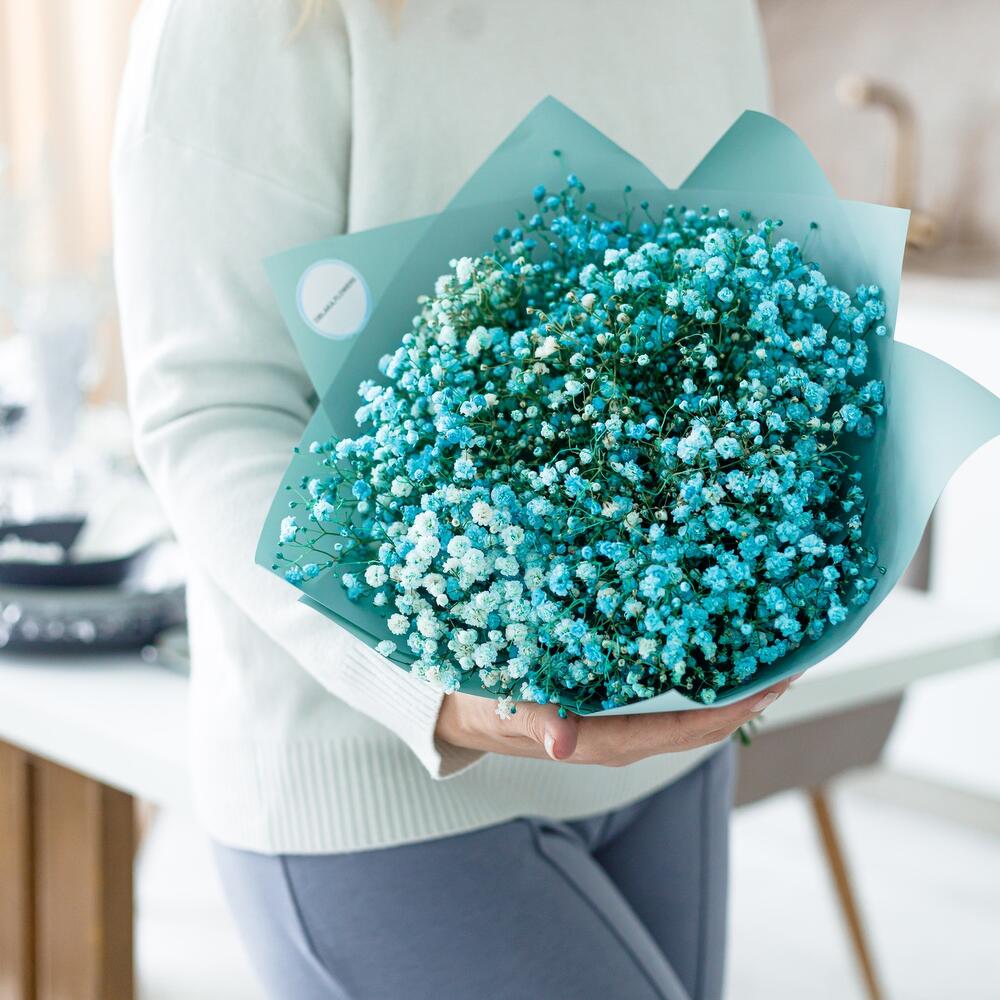 Очаровательный букет из воздушной гипсофилы. Ни одна дама, точно не останется равнодушной при виде такого букета.Инструкция по уходу за цветами прикреплена к каждому заказу.Цветы гипсофилы отличаются стойкостью и даже при высыхании не теряют, декоративности и цвета. Что позволяет, долгое время украшать интерьер в качестве сухоцветов.Подпишем открытку с вашими пожеланиями бесплатно