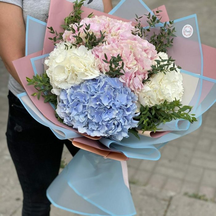 Гвоздики, Гортензии, Лизиантусы, Пионовидные розы, Розы