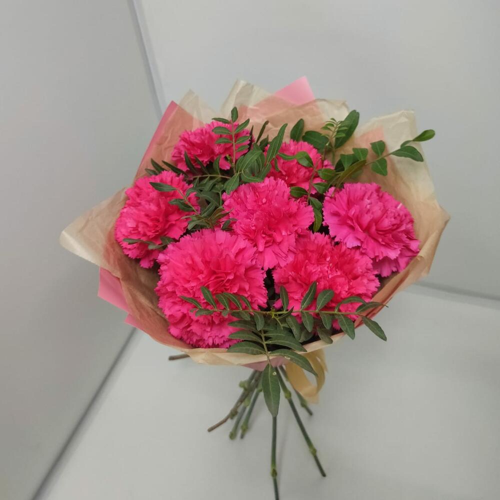 Букет из 7 гвоздик малиновых с фисташкой