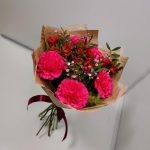 диантусы – 5 шт.Альстромерия – 3 шт.Гипсофила – 1 шт.зелень фисташки – 1 шт.Дизайнерская упаковка – 1 шт.