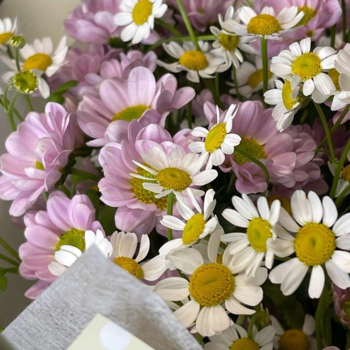 Букет с ромашками и кустовой хризантемой “Дыхание лета”
