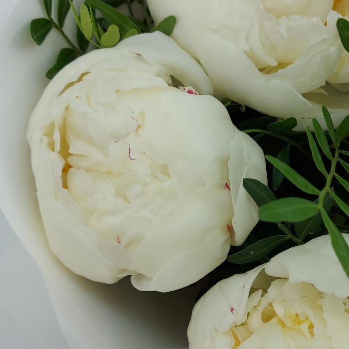 Зелень – 8 шт.Лента атласная – 1 шт.Пион премиум – 9 шт.Упаковка пленка матовая – 2 шт.