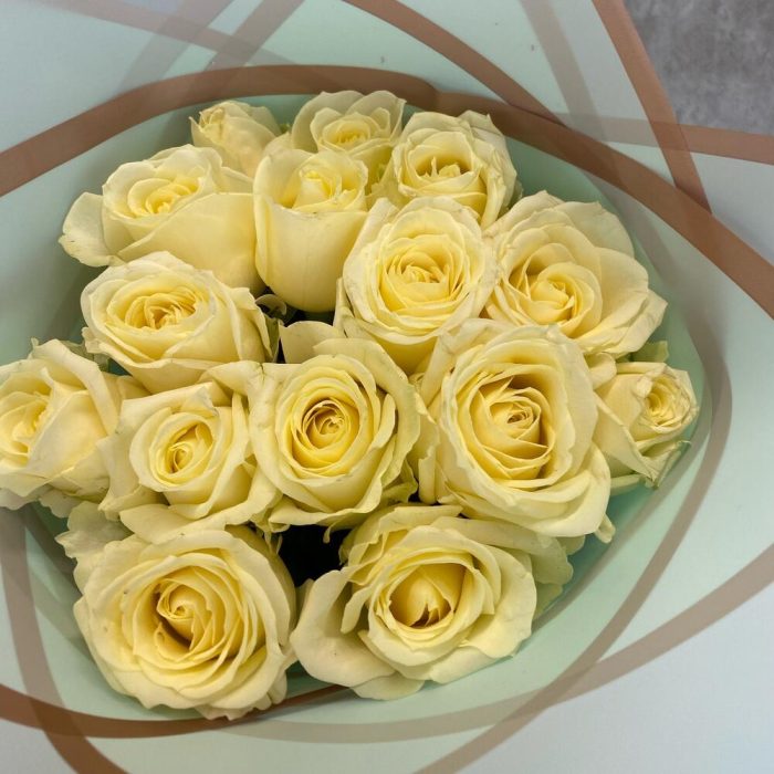 Роза – 15 шт.Корейская упаковка – 3 шт.Атласная лента – 1 шт.