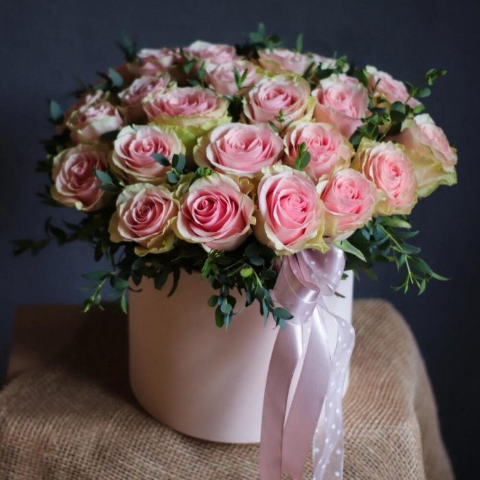 “В твоих глазах”: нежная шляпная коробка с французскими розами