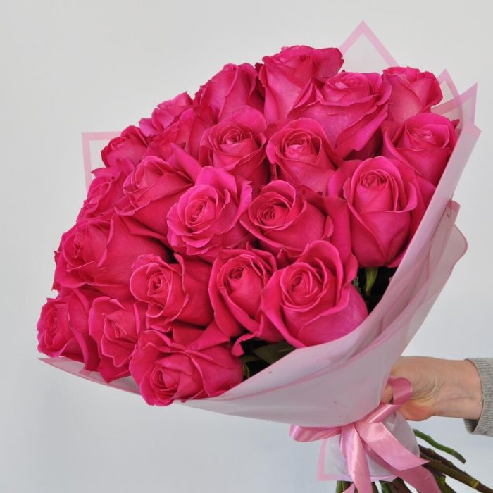 роза эквадор Pink Floyd 60 см – 25 шт.Пленка матовая – 3 шт.Лента атласная – 1 шт.конверт с инструкцией по уходу – 1 шт.Прикормка для цветов – 1 шт.