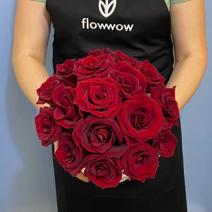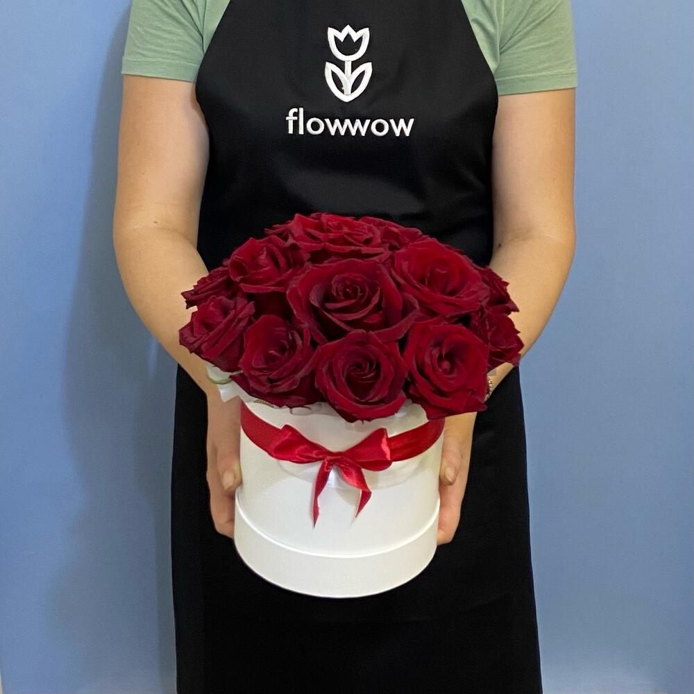 Роза Эквадор Премиум – 15 шт.Шляпная коробка с лентами – 1 шт.