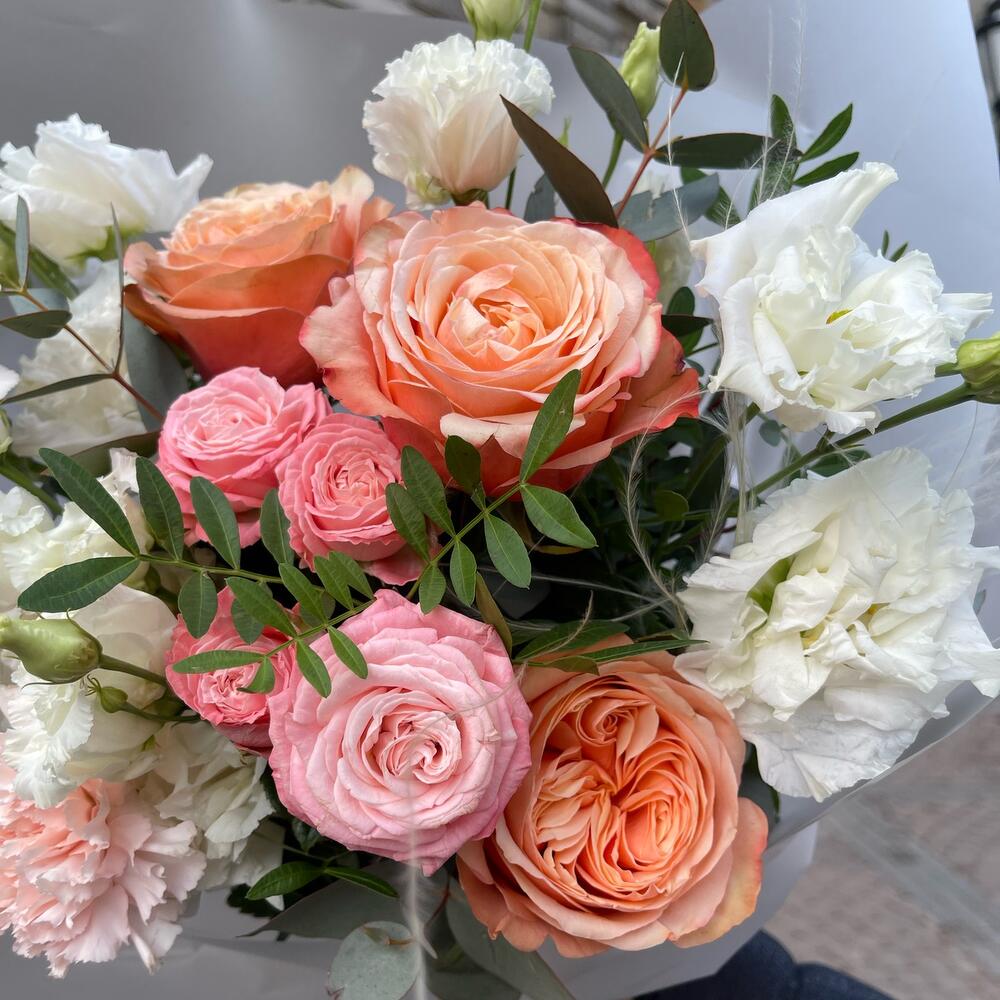 Категорий: Гвоздики, Кустовые розы, Лизиантусы, Пионовидные розы, Розы