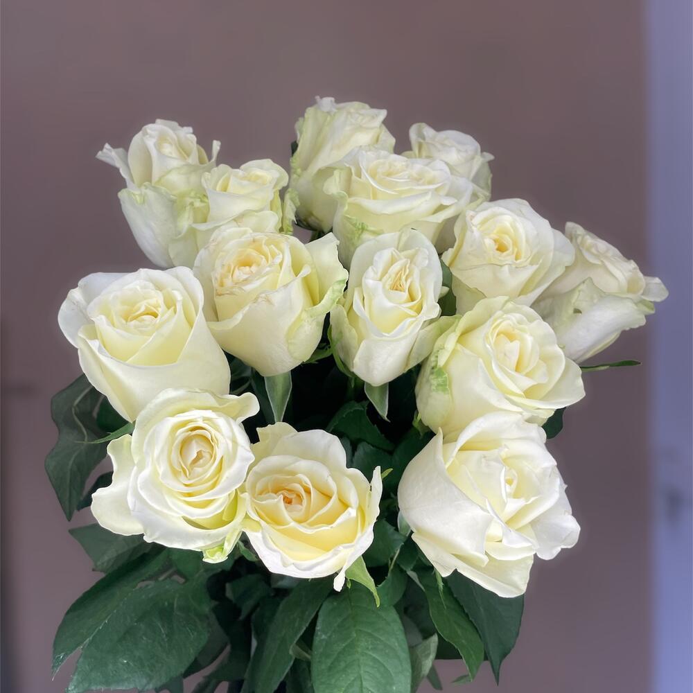Букет белых высоких роз 15 штук