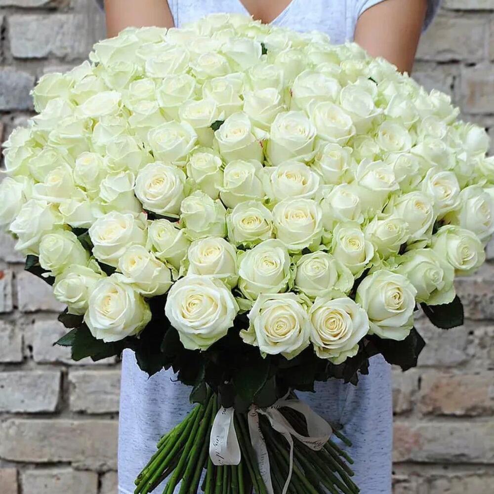 Букет из 101 Белой Розы 70см Эквадор