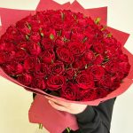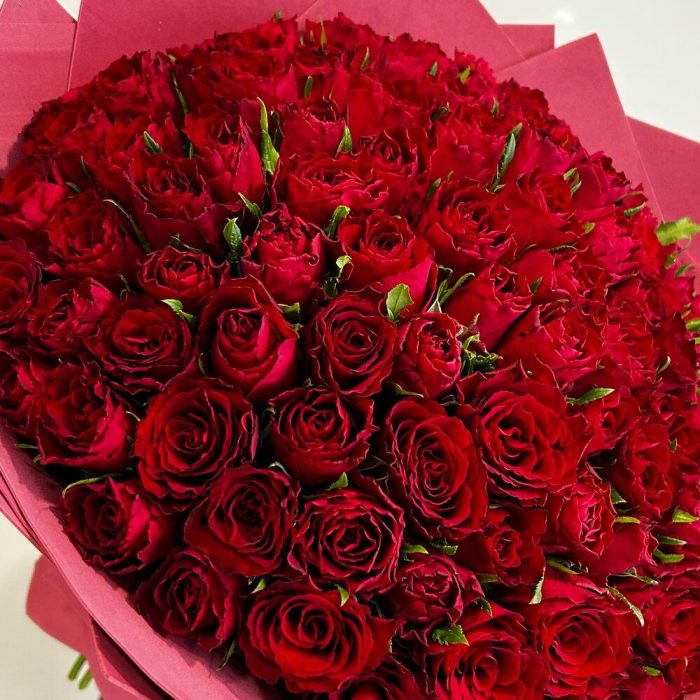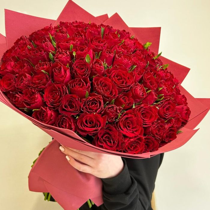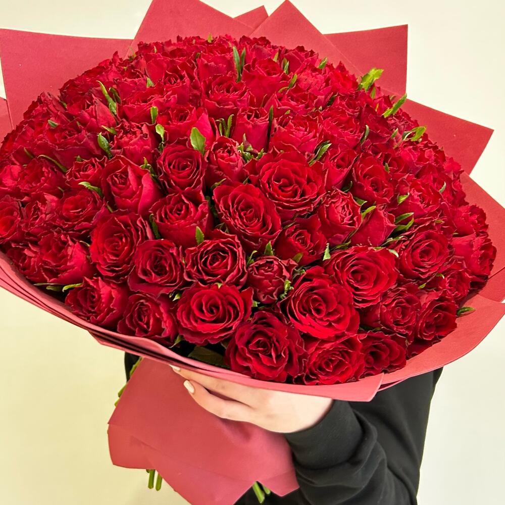 Роза – 101 шт.Лента атласная – 5 шт.Упаковка дизайнерская – 5 шт.
