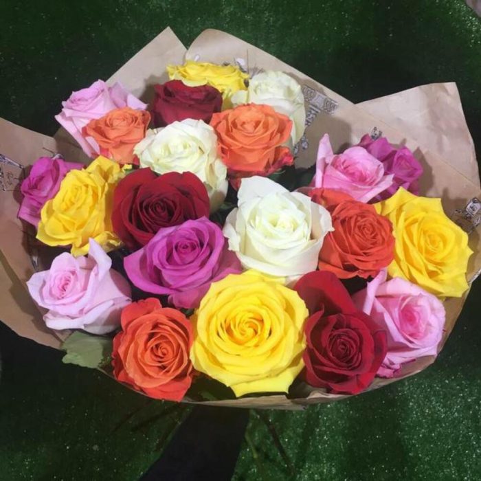 Лента – 1 шт.Роза Эквадор – 19 шт.Крафт бумага – 4 шт.