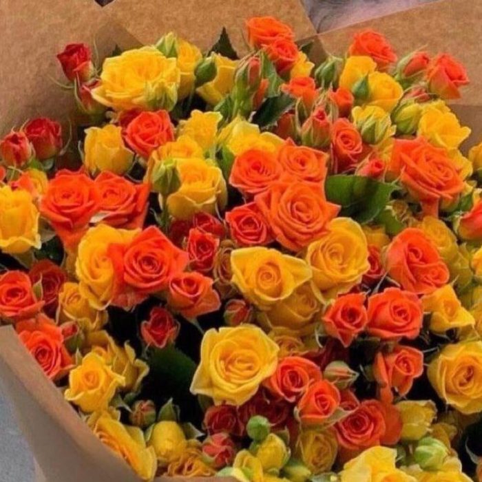 Роза кустовая – 51 шт.Упаковка дизайнерская – 1 шт.Лента атласная – 2 шт.Открыточка с вашими пожеланиями – 1 шт.хорошее настроение – 100 шт.инструкция по уходу за цветами – 1 шт.коробка переноска – 1 шт.Кризал – 1 шт.