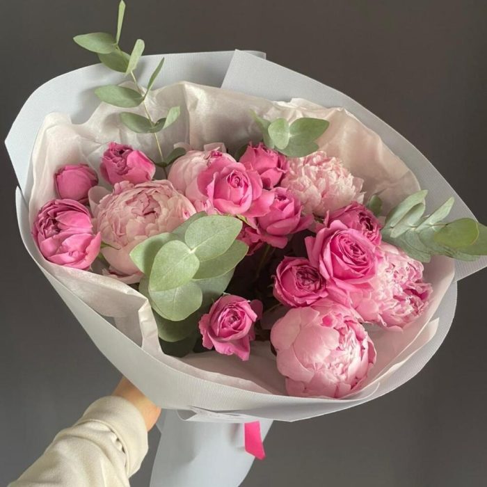 Альстромерии, Кустовые розы, Лизиантусы, Пионовидные розы, Розы, Ромашки