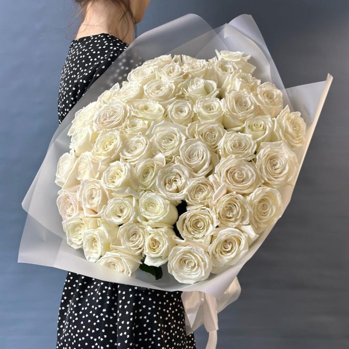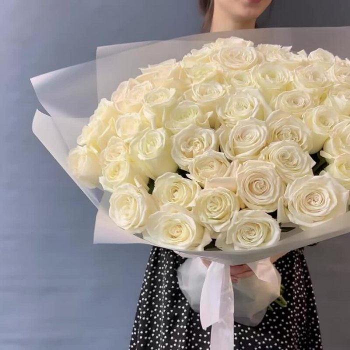 роза пионовидная плая бланка – 49 шт.матовая прозрачная корейская пленка – 3 шт.Лента атласная – 1 шт.