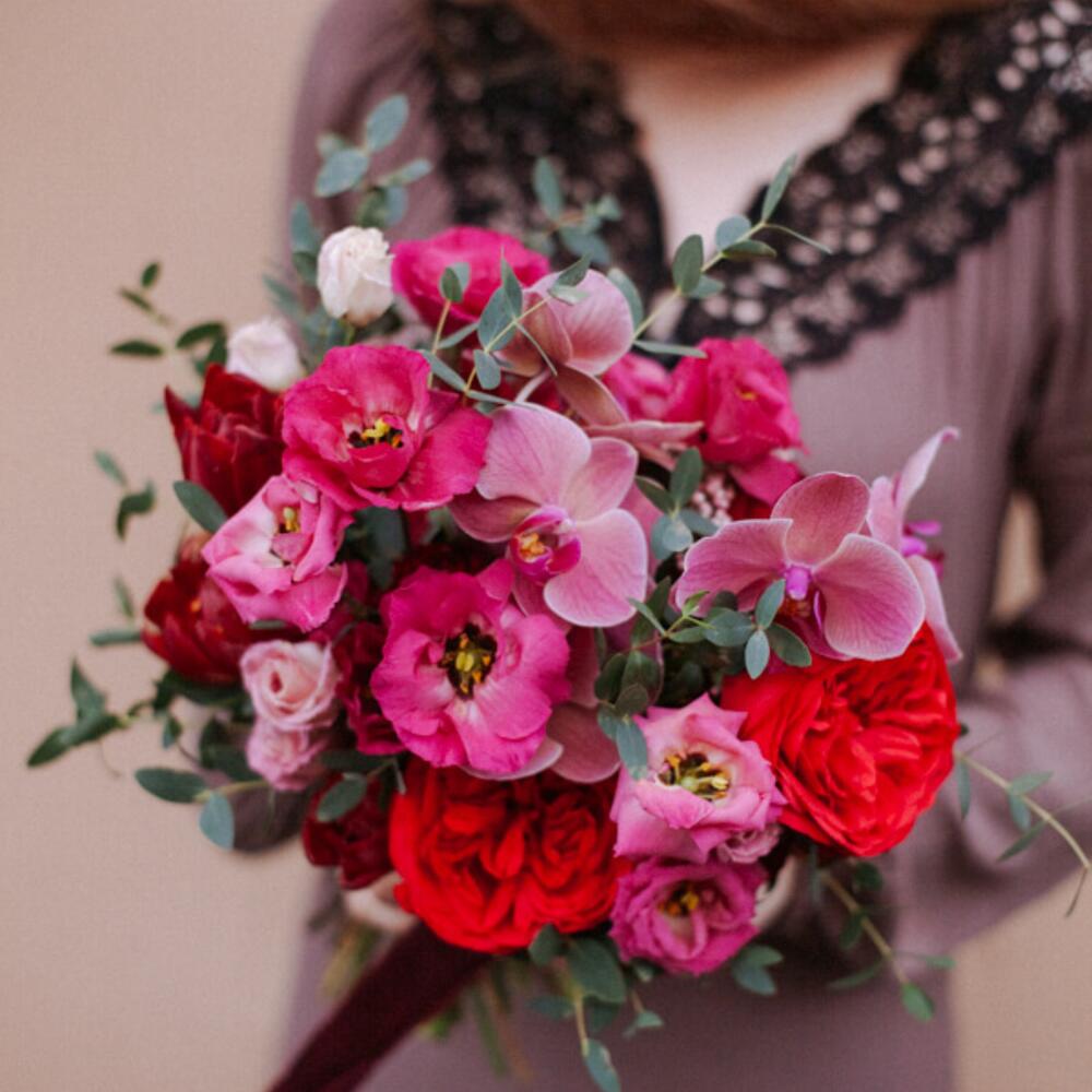 Категорий: Кустовые розы, Лизиантусы, Орхидеи, Пионовидные розы, Розы