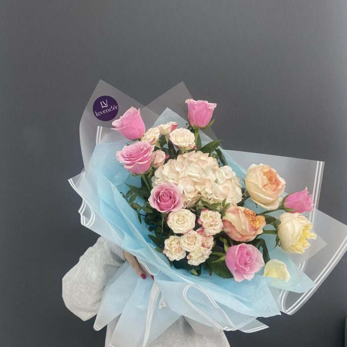 Альстромерии, Кустовые розы, Лизиантусы, Пионовидные розы, Розы, Ромашки