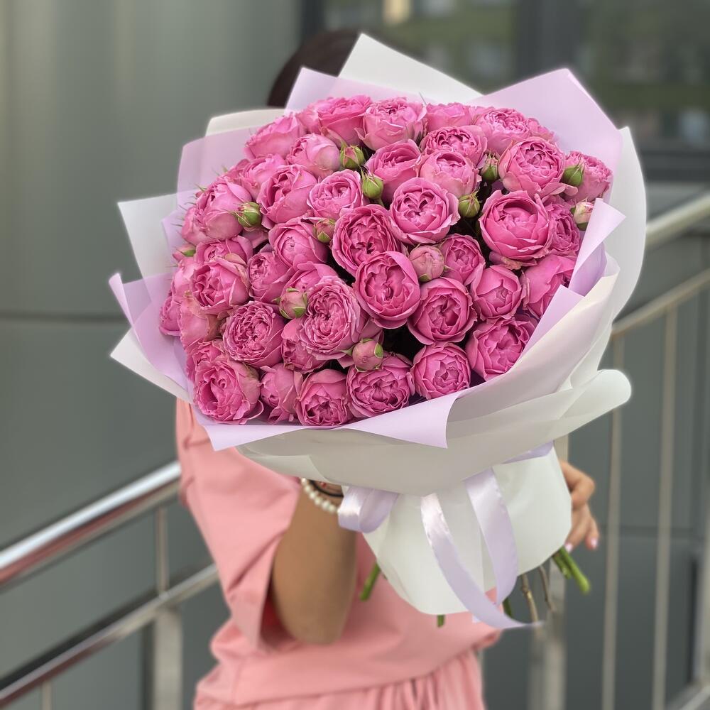Букет из кустовых пионовидных роз в оформлении!