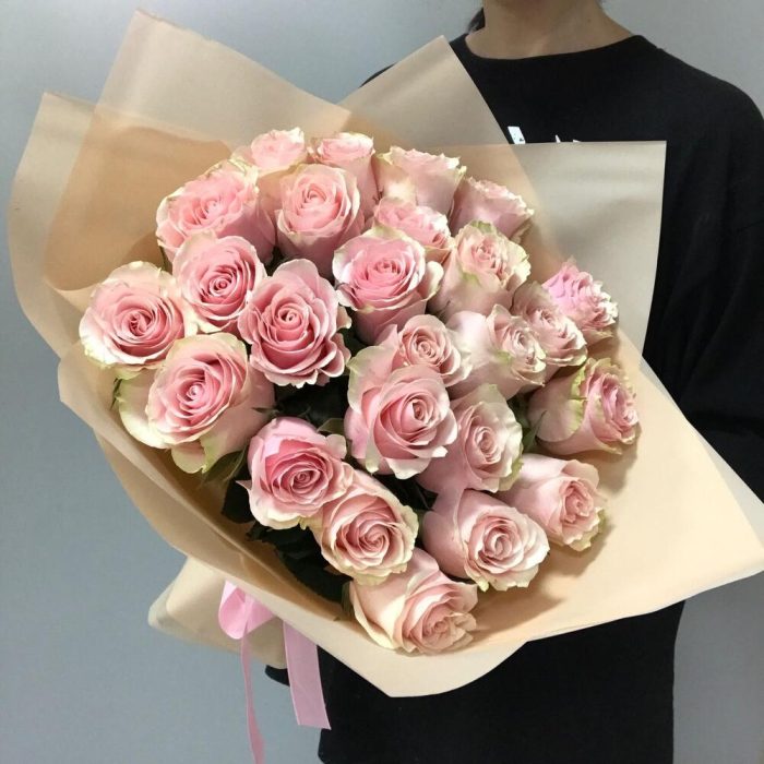 25 роз explorer PREMIUM 50 см в крафте с зеленью