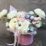 Цветы из роз в шляпной коробке