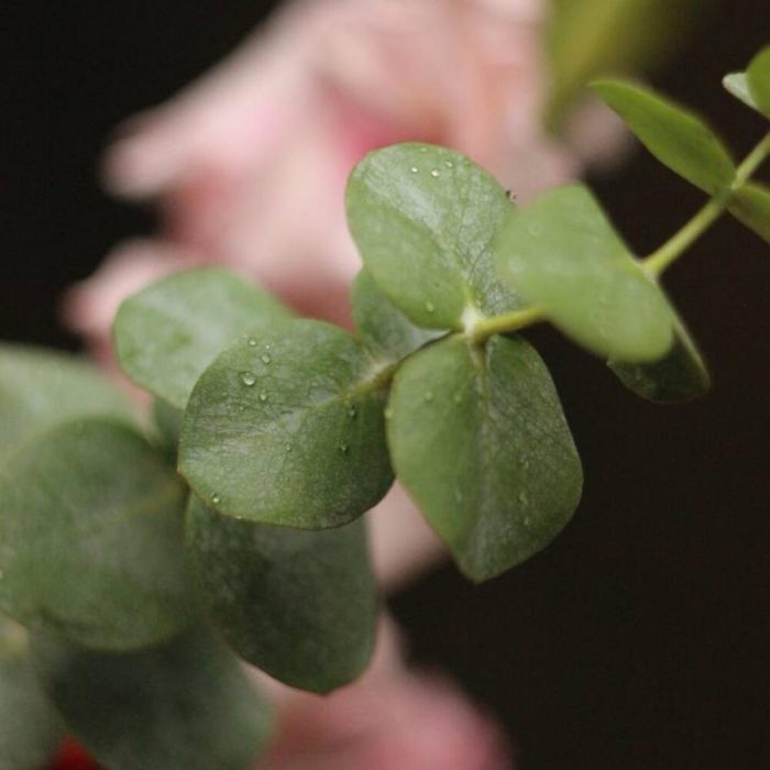 Гортензия – 2 шт.Роза пионовидная – 3 шт.Вибурнум ягодный – 1 шт.Колокольчик – 3 шт.зонтики – 3 шт.Лизиантус – 1 шт.Эвкалипт – 5 шт.Лента – 1 шт.