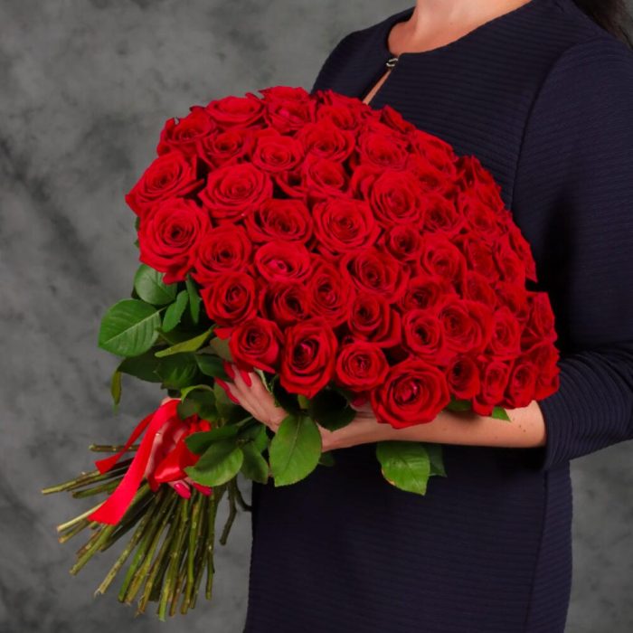 Классический букет из 55 красных роз.