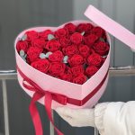 “Сладкое сердце ” – цветочная композиция с сладостями в коробке “Сердце”