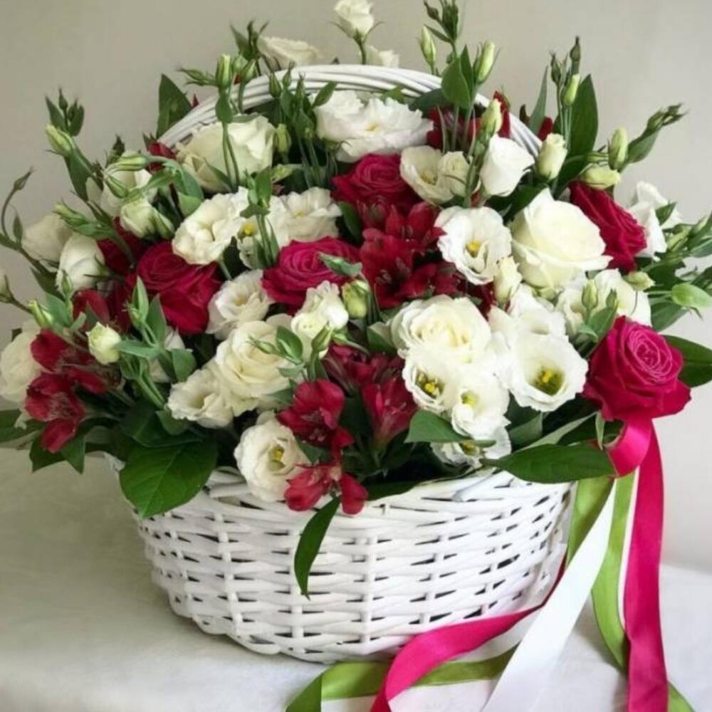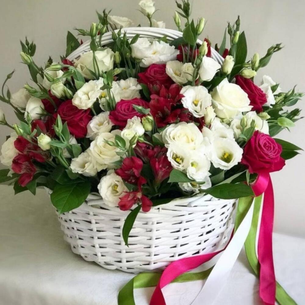 Альстромерии, Гвоздики, Кустовые розы, Лизиантусы, Розы, Хризантемы