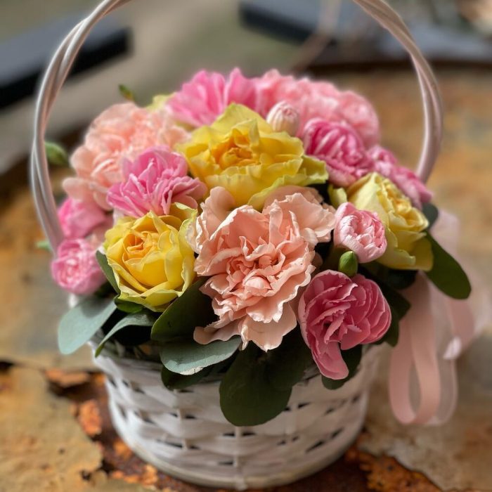 Корзиночка с цветами в нежных тонах