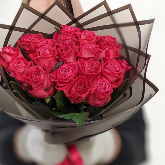 Роза малиновая – 19 шт. Упаковка дизайнерская – 1 шт.
