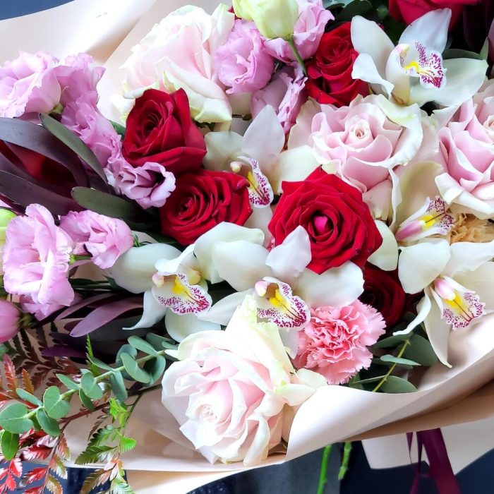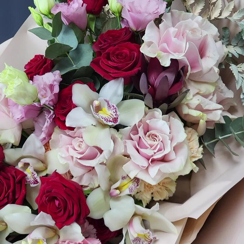 Категории: Гвоздики, Лизиантусы, Орхидеи, Розы
