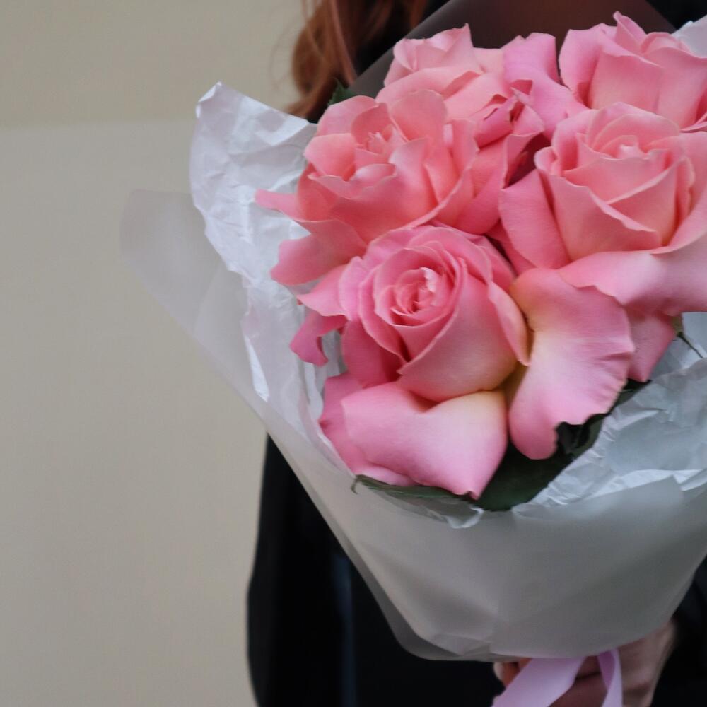 Лента – 1 шт.Матовая пленка – 4 шт.Калька упаковка – 3 шт.роза hermosa 50 см эквадор – 5 шт.