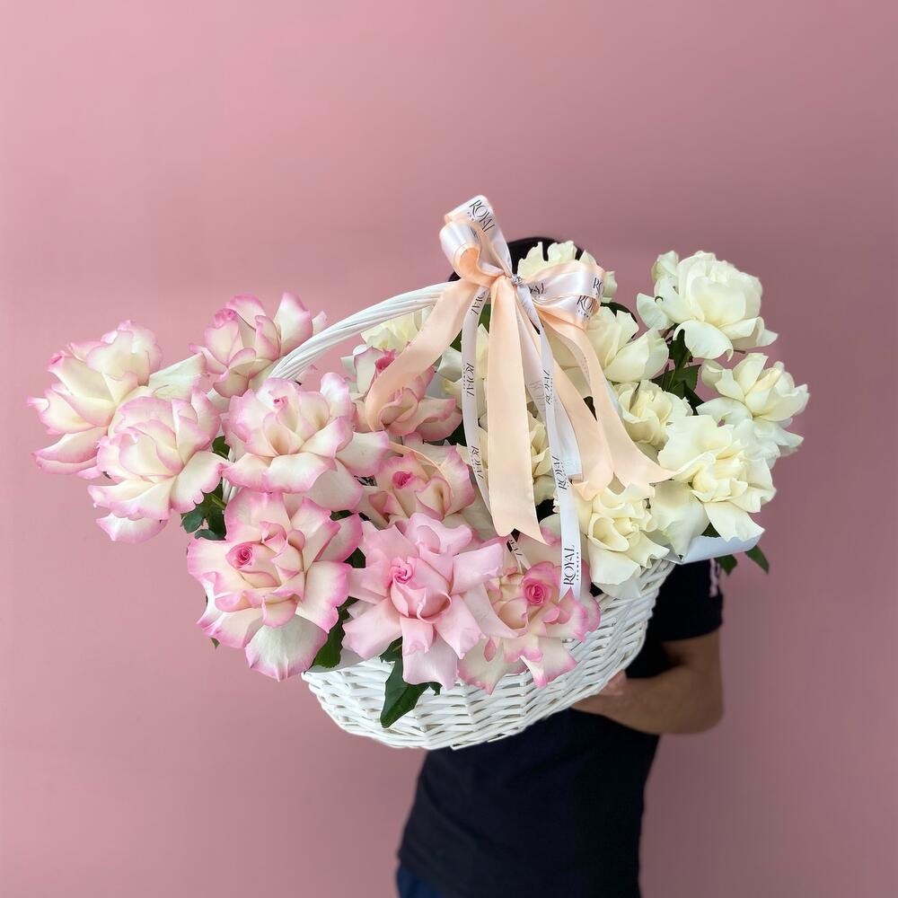 Альстромерии, Кустовые розы, Лизиантусы, Пионовидные розы, Розы, Ромашки