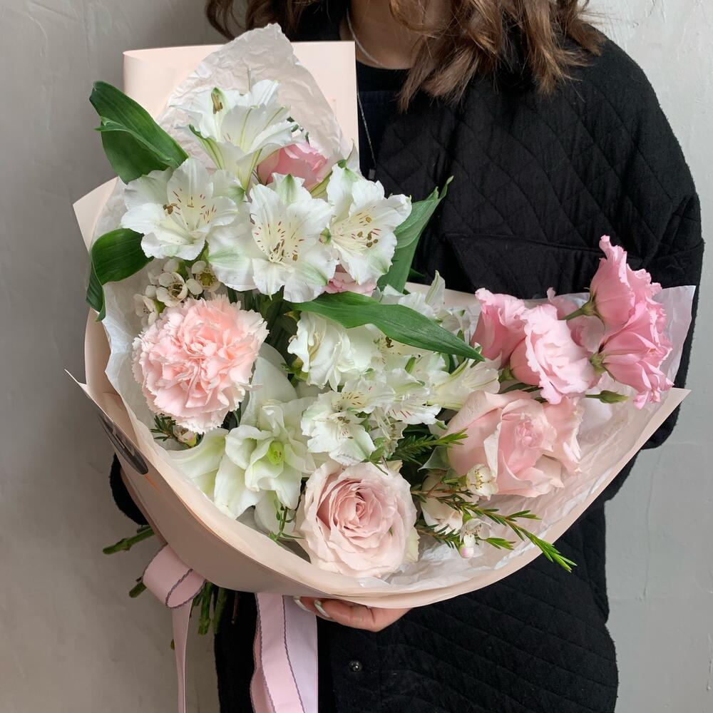 Категорий: Альстромерии, Гвоздики, Лизиантусы, Лилии, Розы