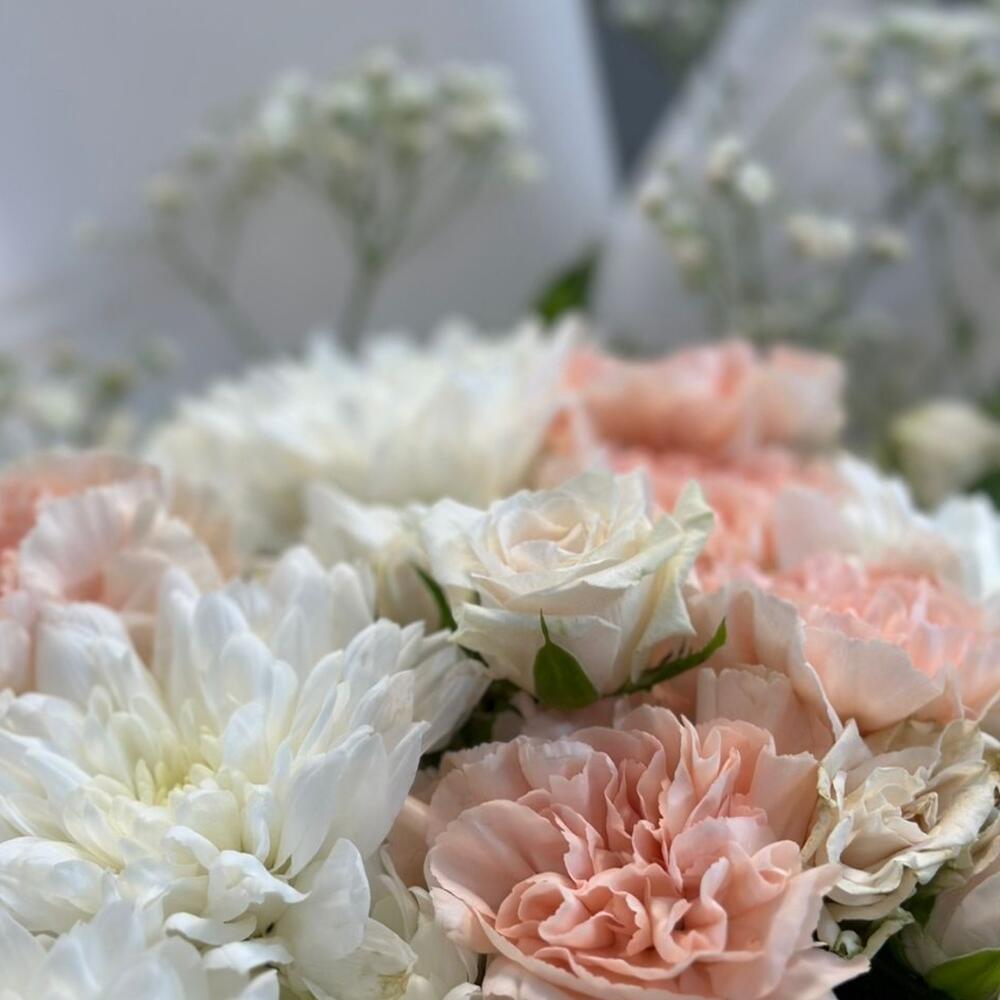 Категорий: Гвоздики, Гипсофила, Диантус, Кустовые розы, Розы, Хризантемы, Хризантемы кустовые