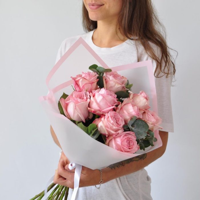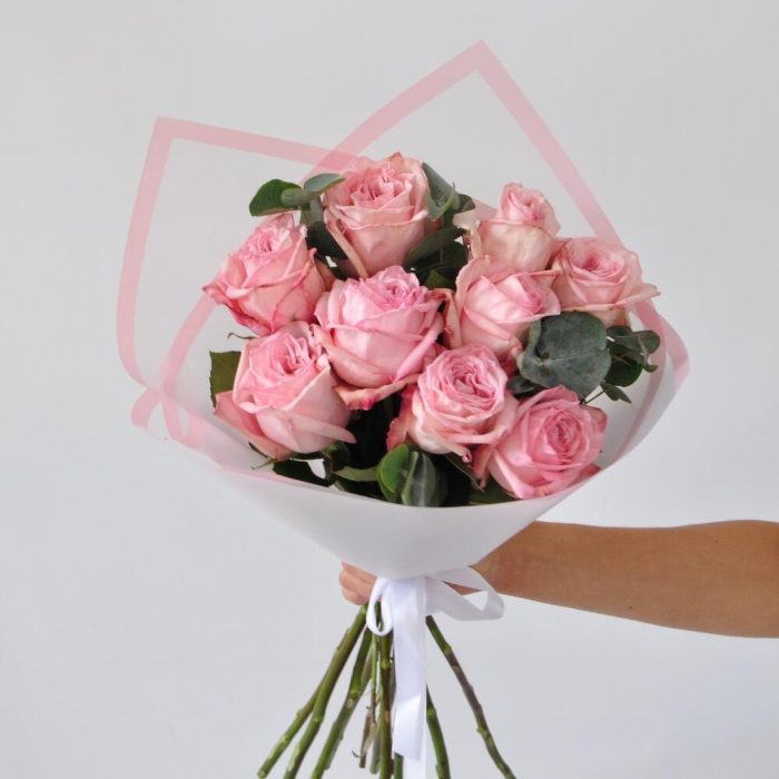 Эвкалипт – 3 шт.розы pink o’hara – 9 шт.