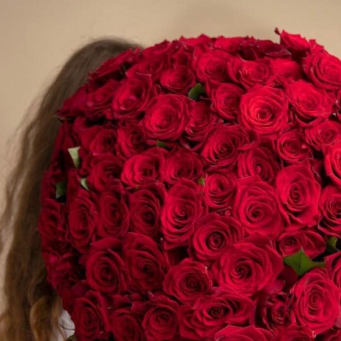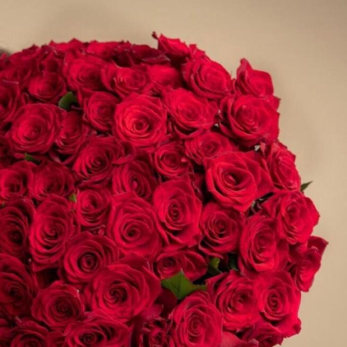 Роскошный букет из 101 красной розы. Букет 158 ALMOND ROSES