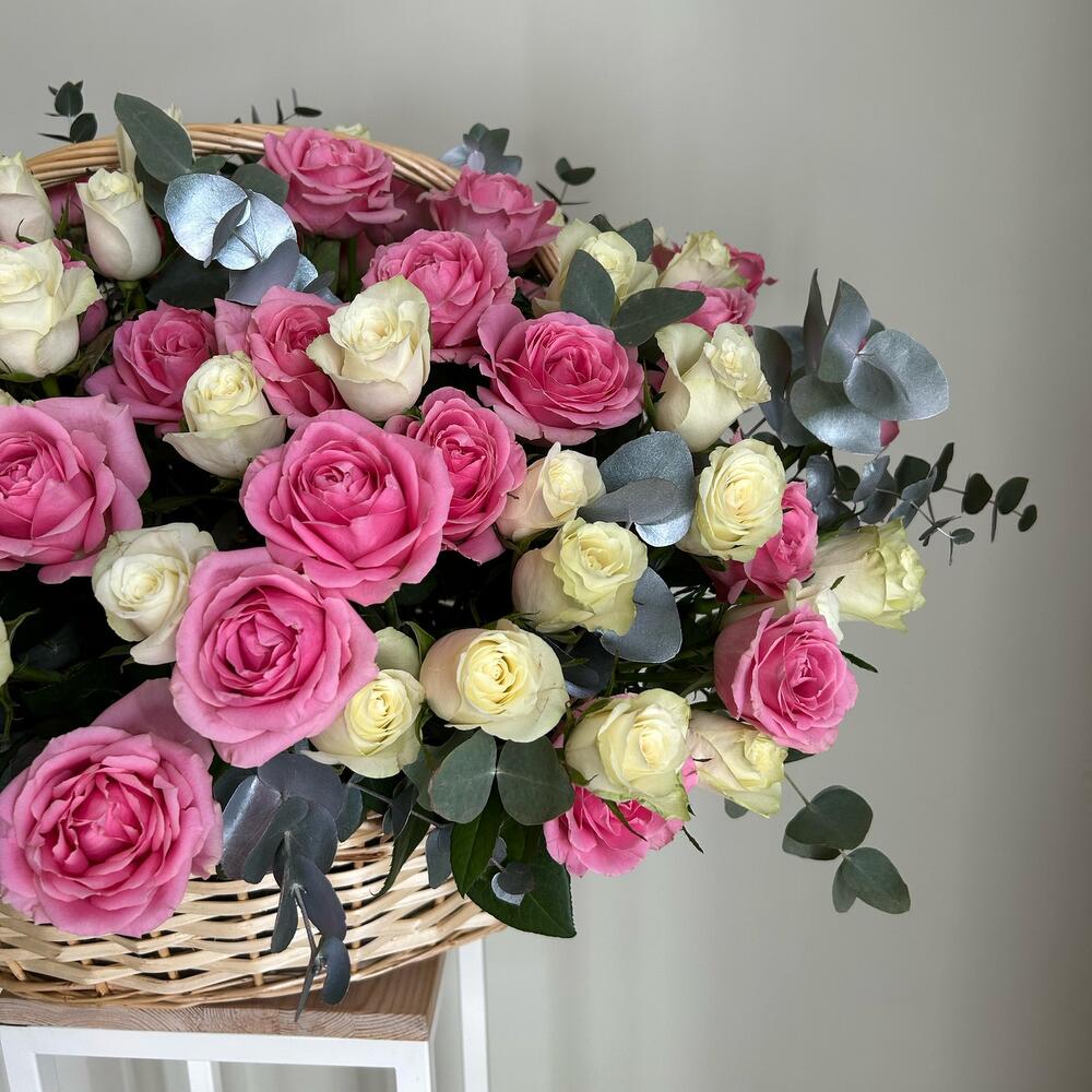 Гвоздики, Кустовые розы, Пионовидные розы, Розы